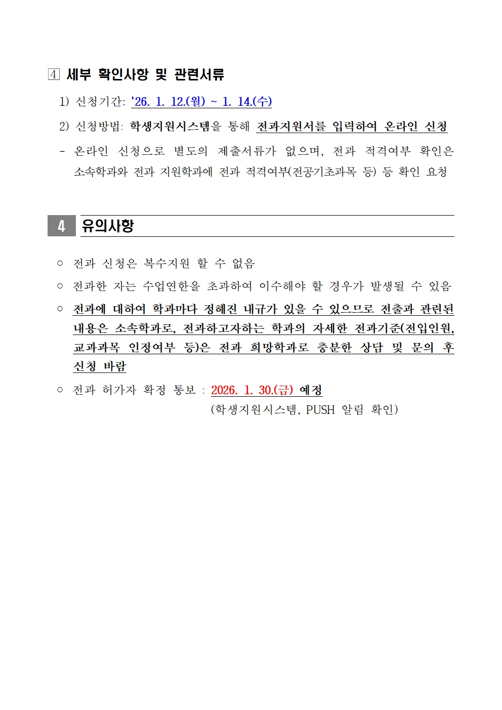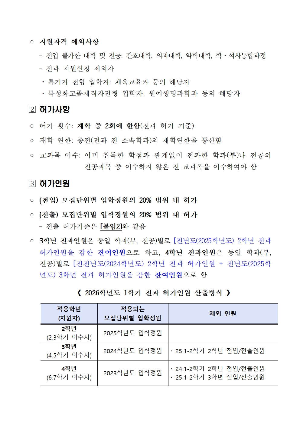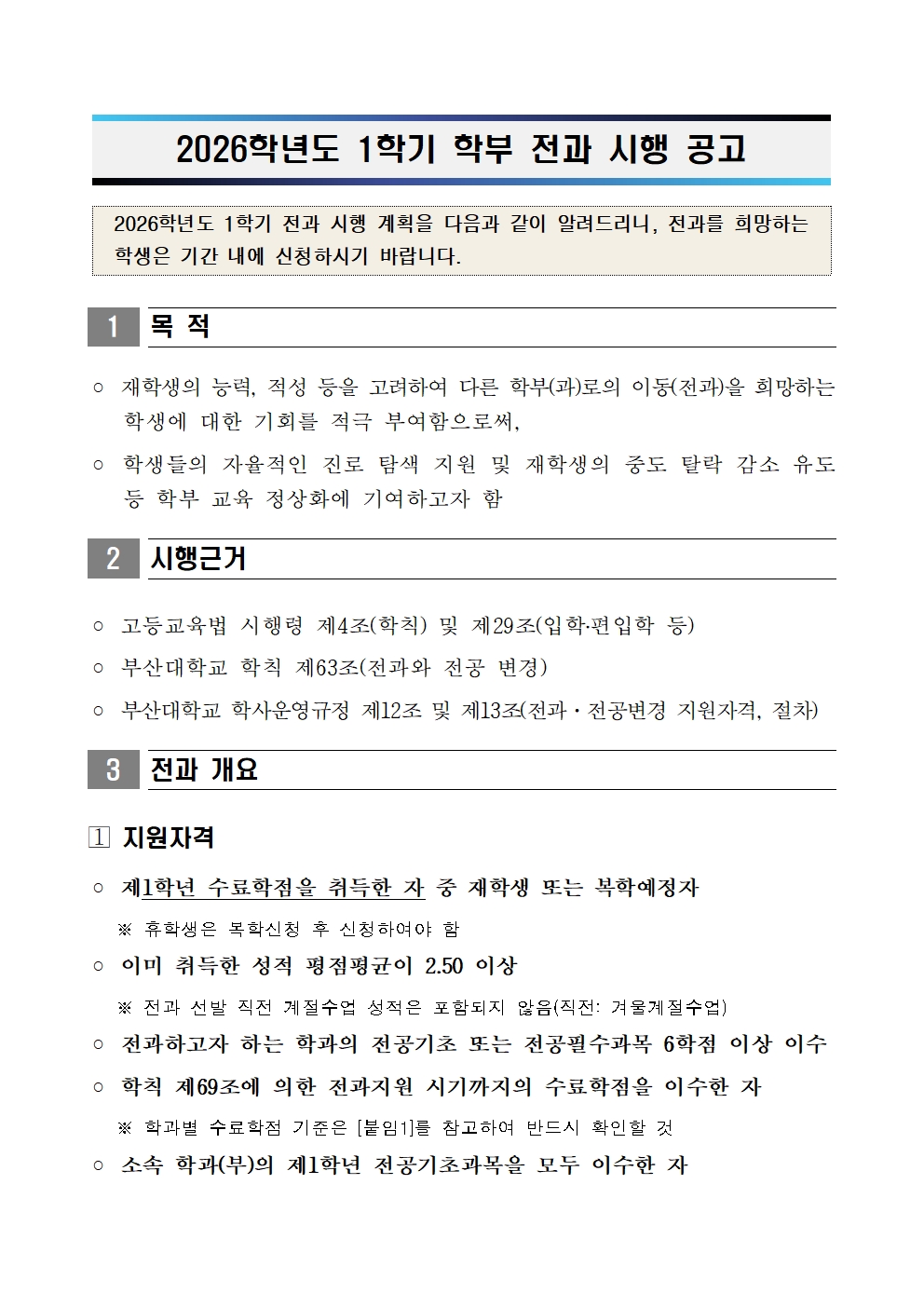 2026학년도 1학기 학부 전과 시행 공고.hwp