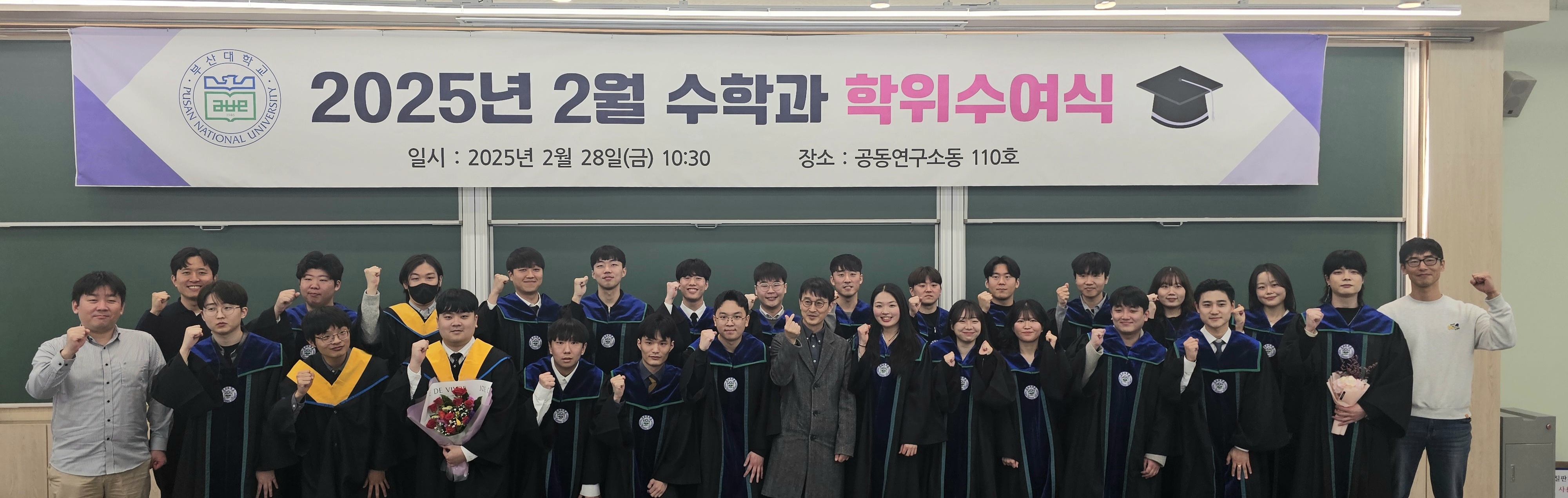 fnctId=bbs,fnctNo=2817 작성일 2025.02.28 수정일 2025.02.28 작성자 수학과 조회수 0 2025년 2월 수학과 학위수여식 수학과 졸업을 진심으로 축하합니다. 첨부파일 첨부파일이(가) 없습니다.