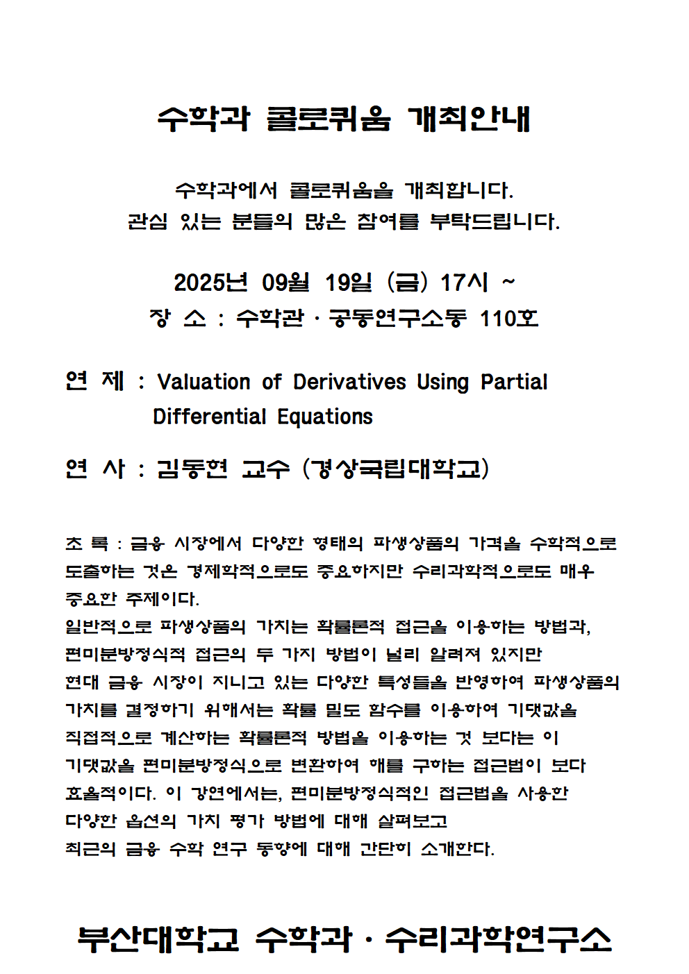 fnctId=bbs,fnctNo=2820 작성일 2025.09.17 수정일 2025.09.19 작성자 수학과 조회수 46 콜로퀴움 (김동현 교수) (9월 19일) 첨부파일 첨부파일이(가) 없습니다.